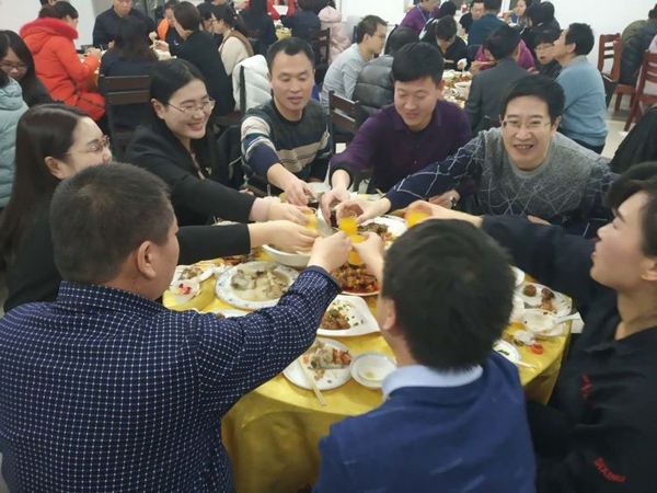 希望大家盡情享受這次歡聚,同時感謝高管們為大家服務,感謝食堂全體員工的配合與付出,各個部門的精心準備,感謝吳夢蝶、王明明、王震山等的精心準備。更加感謝所有同事們2018年的艱辛付出。希望我們再接再厲,認真落實公司的每一項要求,爭取完成公司的新年目標,收獲一個美好的2019年,謝謝大家,來年再聚。