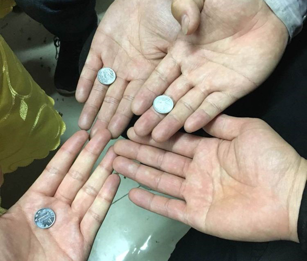 接下來進入一發不可收拾的環節,包餃子的時候,活動籌備組特意準備30多個硬幣放在餃子里,吃到硬幣的幸運職工小伙伴們可以兌換獎金。1毛硬幣兌換10元,5毛硬幣兌換50元。