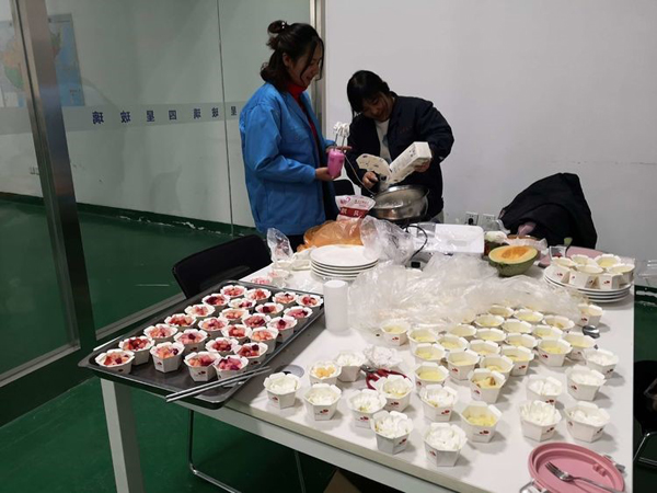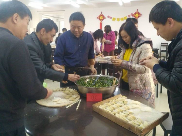 包餃子啦,我們電子商務部的還沒有嫁人,需要學習包餃子,以后好讓婆婆喜歡。