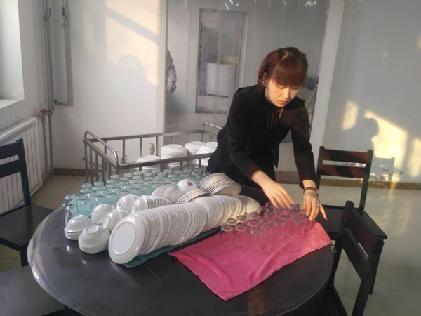 活動結束,大家共同幫助食堂工作人員收拾餐桌,四星人就是高素質。