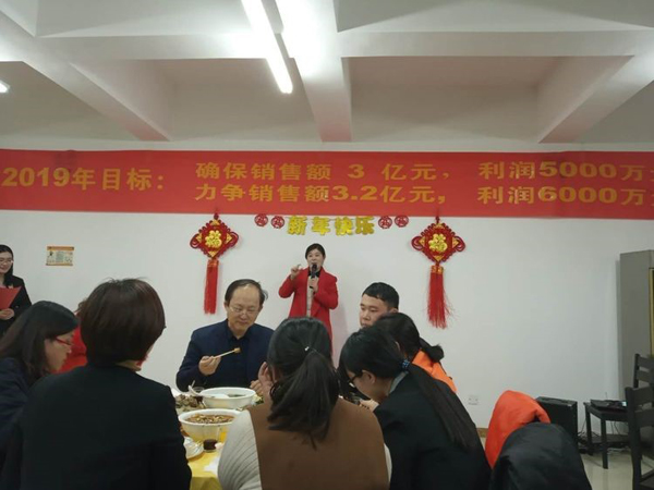 董事長首先給大家拜年鞠躬,感謝大家一年來的付出。回顧2018年的艱難與艱辛,社會經濟形勢疲軟,公司雖然緊張但已經是同地區過的最好的大公司,感謝大家這一年對公司的信任與支持,同時也肯定了2018年是公司業績最優,技術突破最多,成績最好的一年。