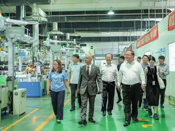 深入生產(chǎn)一線,見證四星魅力 隨后,法赫米先生一行深入公司生產(chǎn)現(xiàn)場,實(shí)地參觀了預(yù)灌封注射器生產(chǎn)線、西林瓶生產(chǎn)線及玻管生產(chǎn)線。整潔有序的生產(chǎn)環(huán)境、高度智能化的生產(chǎn)設(shè)備,無不彰顯著四星玻璃的現(xiàn)代化生產(chǎn)能力和科技實(shí)力。法赫米先生對(duì)四星玻璃的智能化水平給予高度評(píng)價(jià),并對(duì)產(chǎn)品質(zhì)量表示了充分信心。
